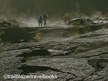 Take a walk on the wild side at Volcanoes National Park on the Big Island of Hawaii. Iki Crater trail is one of the park’s best. Be sure to check in at the Visitors Center to find out the status of the active volcano and trail closures. The Hawaii Big Island Trailblazer has directions to all the sites.