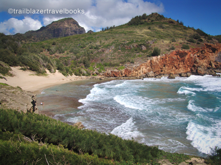 From road’s end Kawailoa Bay, a trail hugs ragged coastal bluffs for a mile, dipping into a cove and then coming to an end at Haula Beach. Above this little bay, a hunter’s trail switchbacks up a head of land and comes to a remote overlook of Kipu Kai Beach—which was the “ranch” featured in the movie, “The Descendants.” Kipu Kai is private property. Kayakers also access this beach (all beaches are public land) by paddling around the head of land visible from Kawailoa. This paddle, though not extreme, is not for beginners or for anyone else when the surf’s up.