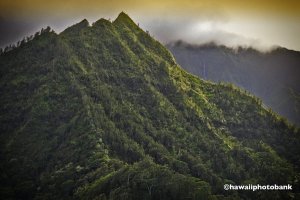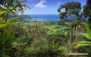 The splendid Okolehao Trail rises to the best vantage point of the Hanalei coast and valley. Footing along the trail was precarious and downright dangerous due to the downpour the night before. “End of the Trail” marker was at an elevation of 1,300 ft with a satisfying 360 degree view of the Hanalei region. Hihimanu summit’s Batman profile up close and personal was worth the death-defying jaunt. To forge ahead would have taken a Tarzan swing down a rope suspended down a slippery cliff. We backed off at that point. The two miles back required fancy stepping through steep snotty roots. Bring hiking poles on this one. Driving to the trailhead directions in the Kauai Trailblazer guidebook.
