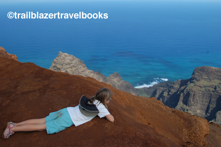 A connector trail links the Nualolo to its sister ridge, the Awa’awapuhi Trail, also spectac. (Ask locally before making this loop, since the connector trail sometimes gets thrashed by heavy rains.) See pages 163 and 168 in Kauai Trailblazer.