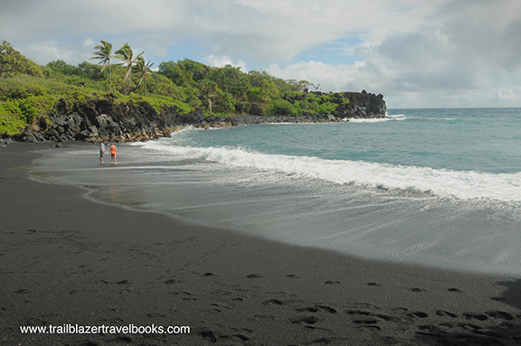 Traveler’s on Maui’s winding-and-waterfall-filled Hana Highway should slow down 2 miles outside of the little town and hang a left to Wainapanapa State Park. Its black sand beach is the best snorkeling and swimming place on the coast–unless the waves are cranking. From the beach, a coastal trail penetrates pandanus forest to the Kaupukalua Burial grounds, and other ancient sites.