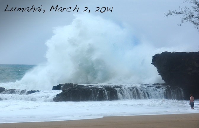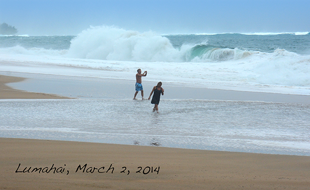 Flirting with death at Lumahai Beach on high surf day. Never trust a wave, never turn your back on a wave, respect the ocean at all times. These 30 footers can easily grab you and pull you out to sea.
