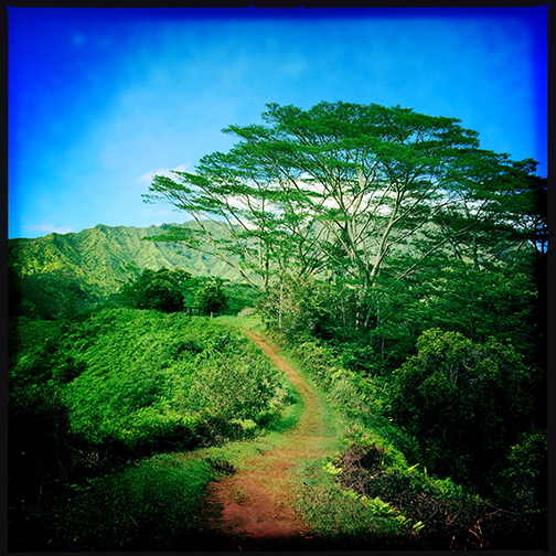 From my iphonography files, just after it rained on a lush trail in Kauai’s interior. Bike it, hike it, a ten on my fun-o-meter. Directions in your Kauai Trailblazer guide.