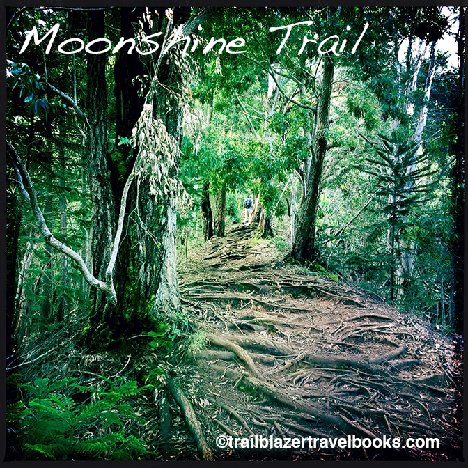 Hiking the Moonshine Trail, north shore Kauai. A memorable muddy walk up the mountain spine. Rooty, rugged and oh the thrilling views of Hanalei Bay. Find the directions in your Kauai Trailblazer guidebook.