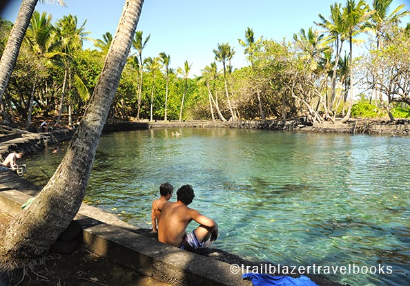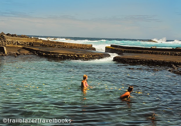 How much would you pay to spend the day at a huge warm mineral springs under palm trees by the blue Pacific? At Ahalanui Warm Pond Park on the Puna Coast the answer is nada, zilch, zero. This beauty about 45 minutes from Hilo is a freebie.
