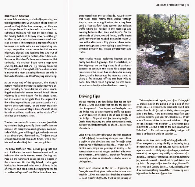 A few sample pages from our vacation planning guide for Kauai, Oahu, Maui and the Big Island.