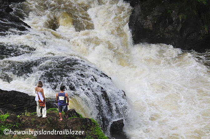 Wailuku River State Park consists of two separate parks, covering about 40 acres a few miles above Hilo. The upper portion is Boiling Pots (Pe’epe’e Falls) a run of rapids and swirling pools. People have died here, and most often, Boiling Pots are dangerous. But when water is low, the pots are primo swimming holes.