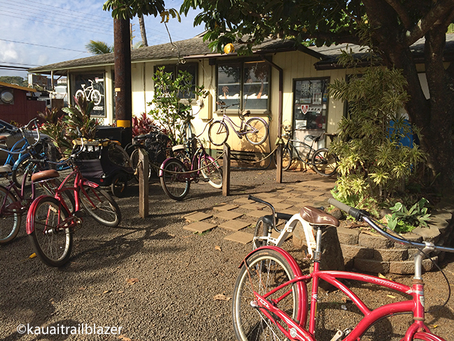 Beach cruiser bikes may be rented at several places in and around Kapa’a. A good choice is Coconut Coasters, centrally located and right on the path. They offer a range of wheels, including three-speeds with nice cushy seats.