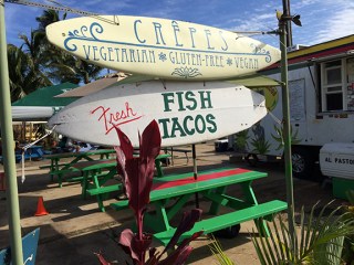 There are plenty of places to hit the brakes for eats and beverages, both in Kapa’a and at the Coconut Marketplace.