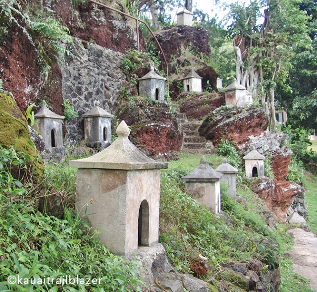 The 88 Holy Places of Kobo Daishi (above), now part of the Lawai International Center near Kalaheo, are miniature stone houses set on a steep hillside. Brought from Japan and emplaced about a century ago, the Buddhist-inspried shrines were swallowed up by greenery until ‘rediscovered’ and refurbished by this nonprofit group about a decade ago. At the end of the road on the north tip of the island, the Kauluolaka Hula Temple is the ancient birthplace of hula in Hawaii. On an unmarked trail, the temple consists of grassy platforms below cliffs just above the crashing waves at the Napali Coast. Since the wildly popular Kalalau Trail and Ke’e Beach are nearby, most visitors miss this wonder. Anyone who has driven through Hanalei will likely remember the green-painted Waioli Hui’ia Church, where a gifted choir plays to a packed house on Sundays.