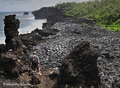 South of the park, the trail skirts Waianapanapa’s rustic cabins (for rent) along lava stacks that do battle with waves. The route continues several miles to Hana, passing the Ohala Heiau along the way.