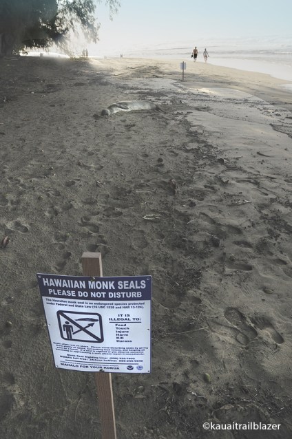At the end of the highway on Kauai’s north shore—and at the beginning of the notorious Kalalau Trail—sweet Ke’e Beach can get killed with kindess on prime-weather days. The main parking lot gets jammed, and so does the overflow lot that is a ten-minute walk from road’s end. Don’t despair. You have outs to find some private space, just like this dude (above and below) an endangered Hawaiian monk seal, whose breathing room is assured by federal law.