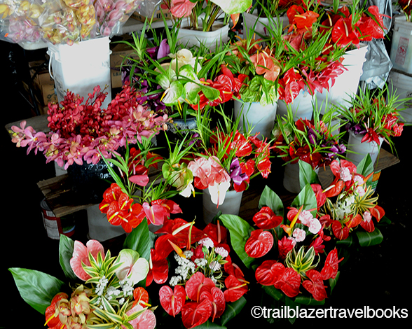 Many restaurants, of course, feature locally grown produce, but you will be paying a premium for small portions. Instead, plan to pick up a low-cost cornucopia of tropical goodies at the beginning of your visit. In the offing are apple bananas, machette-whacked coconuts, papayas, mangos, avocados, a wide-range of citrus, leafy greens, flowers, and herbs—plus some exotics you’ve possibly never imagined, like soursop, star fruit, rambutan, and lilikoi. Enjoy these fresh foods, and you’ll go home with Hawaii in your body as well as your memories. From the pages of Trailblazer Travel Books (one for each island) here are some directions to get down the garden path while on vacation.