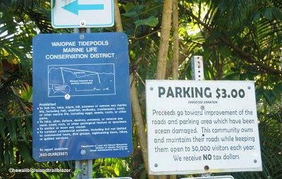 Smooth (pahoehoe) lava surrounds most of the pools, so you end up swimming and then walking over low lava sundecks. Coral heads grow farther out, but visibility is better closer to shore. Water depth is around four feet or shallower, depending on the tide. Swimming is normally safe, but watch out for big waves breaking over the outer reef. The tidepools are growing zones for all sorts of marine life.