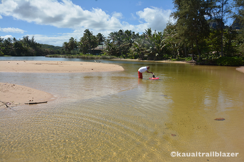 The Anahola River splits the long bay in two. Slack waters provide a fresh water pool for toddlers and waders. The upriver kayak is a mellow adventure. This rural coast of Kauai has many nooks to be discovered by inquisitive tourists. Check it out in Kauai Trailblazer. (Note that discount prices are available on brand new books; see the PayPal link at the top right of this blog.)