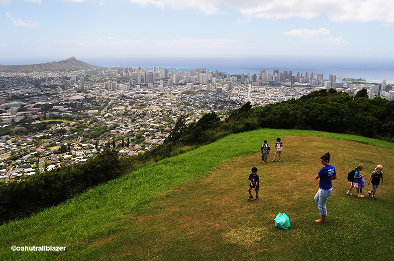 Many of the trails, a couple dozen, begin right above the neighborhoods of Honolulu. Families enjoy the views at Pu’u Ualaka’a State Lookout (above).