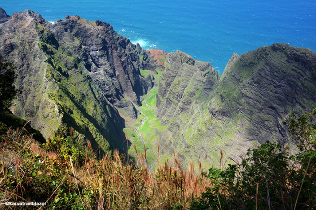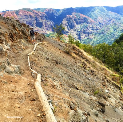 Trail conditions can change overnight due to landslides, tree-falls, and erosion. If you feel the trail ahead is unsafe, then it is. Turn around. Many people ‘go for the gusto’ on Hawaiian trails thinking they are in some sort of adventure Disneyland. Common sense is your friend.