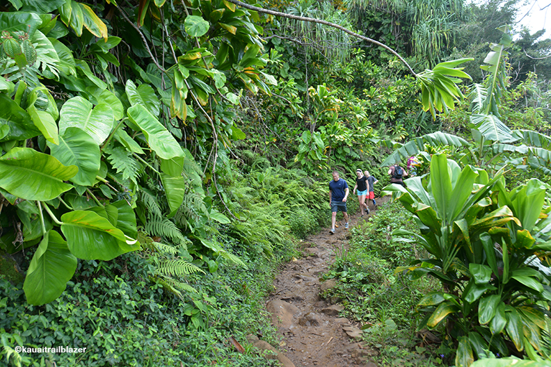 Trail conditions can change overnight due to landslides, tree-falls, and erosion. If you feel the trail ahead is unsafe, then it is. Turn around. Many people ‘go for the gusto’ on Hawaiian trails thinking they are in some sort of adventure Disneyland. Common sense is your friend.