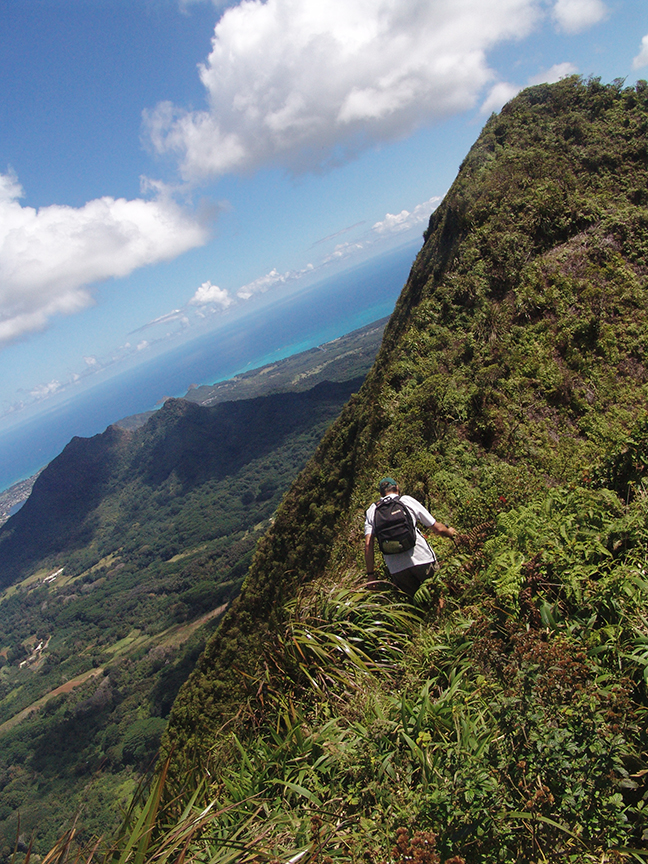 The ridge of the Ko’olau Range (upon which Mt. Olympus sits) is only a couple feet wide in places.