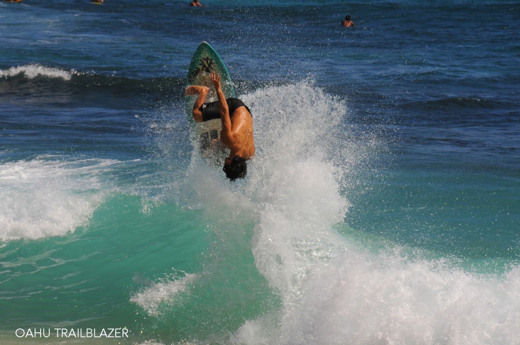 Nearby Halona is where the young and the restless from metro Oahu come together for passionate romps in the wave machine that is Sandy Beach. Skillful surfers skitter on short boards like schools of dolphins, car stereos trumpet a soundtrack. The place is normally jumping, but when competitions take place, the scene amps to da max.